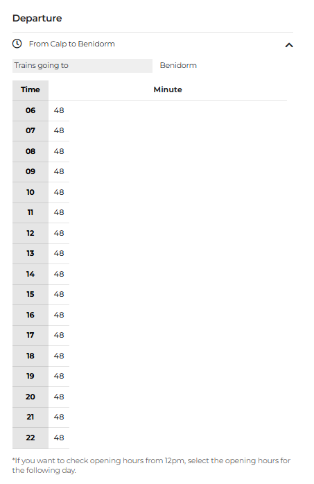For times from Calpe to Benidorm